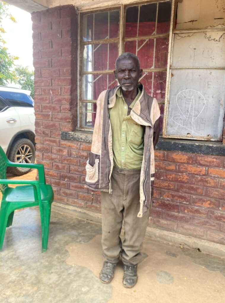 Alice en Rodney wonen hier nu twee weken en wilden ons kennis laten maken met enkele zeer arme mensen uit de omgeving. Vandaag wil ik jullie Tyford voorstellen (foto 8). Hij is een man van 81 jaar. Vroeger werkte hij op zijn land, maar daarvoor is hij nu te oud en te zwak. Hij is alleen, nooit getrouwd geweest en heeft geen kinderen die voor hem kunnen zorgen. Hij had land, maar dat wordt nu zonder betaling door anderen gebruikt.