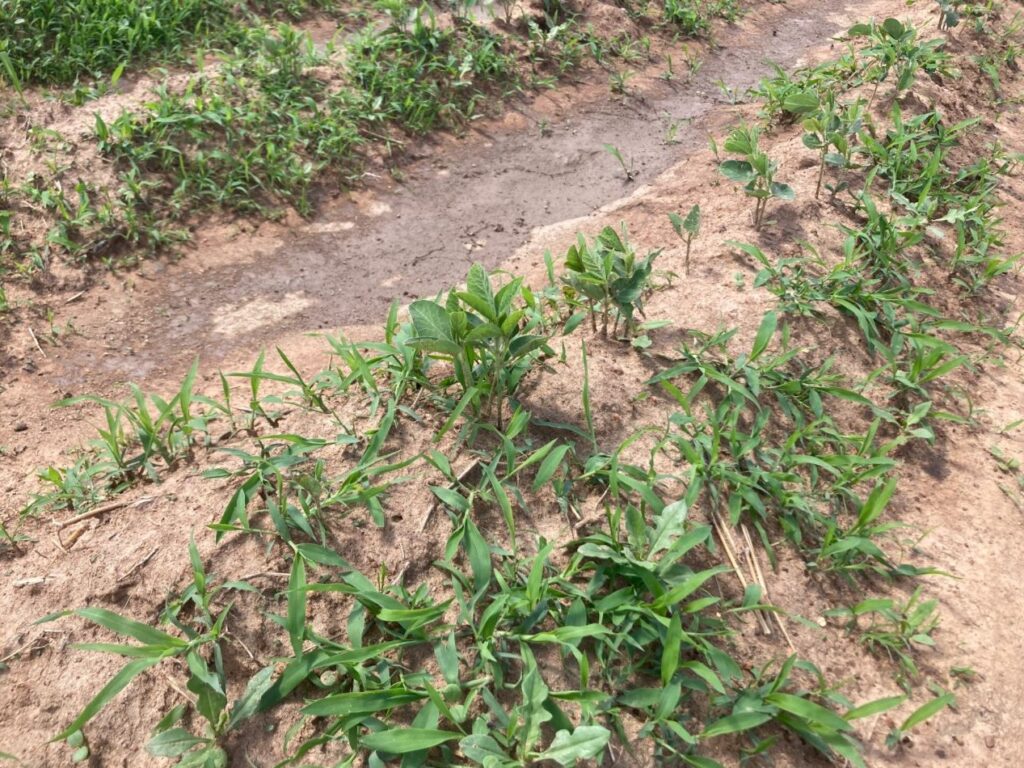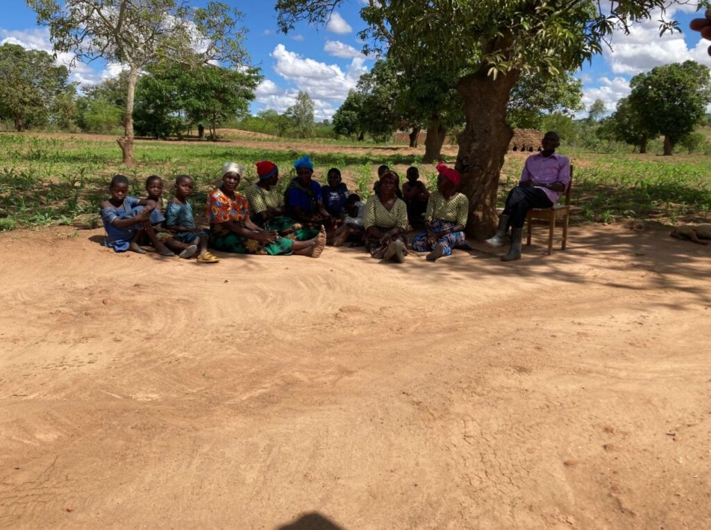 We werden enthousiast onthaald en liepen samen naar de akker. De vrouwen deden dit zingend; ze zijn erg blij en dankbaar dat ze dankzij Food For Life goede oogsten hebben en daardoor voedselzekerheid. Op de akkers lichtte Bo toe wat belangrijk is. De grond is al klaar gemaakt om te kunnen planten en de boeren zijn hier goed bezig. Op foto 12 zie je de groep op het land. We zagen ook dat er sojabonen worden geteeld (foto 13, een beetje een zoekplaatje tussen het onkruid). De beste boer uit de omgeving, Mozes, poseerde nog even met Bo (foto 14). Daarna werd er een vergadering gehouden waarin over en weer dankwoorden werden uitgesproken (foto 15).
