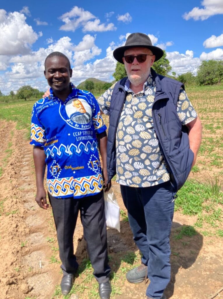 Op de terugweg maakten we nog een korte stop. Aan de andere kant van de weg stopte een auto. Dit was William Tembo, het hoofd van het kerkelijk bureau van de CCAP. We hadden hem afgelopen dinsdag ontmoet. We waren nog onder de indruk van de bezoeken van vandaag, vooral van de ontmoetingen met de arme mensen. We vertelden hem ons plan om deze mensen te helpen en vroegen hem om dit namens de CCAP verder uit te werken. Hij gaf aan dit op te pakken. Daar zijn we dankbaar voor, ook voor het feit dat we hem vandaag zo onverwacht mochten ontmoeten.