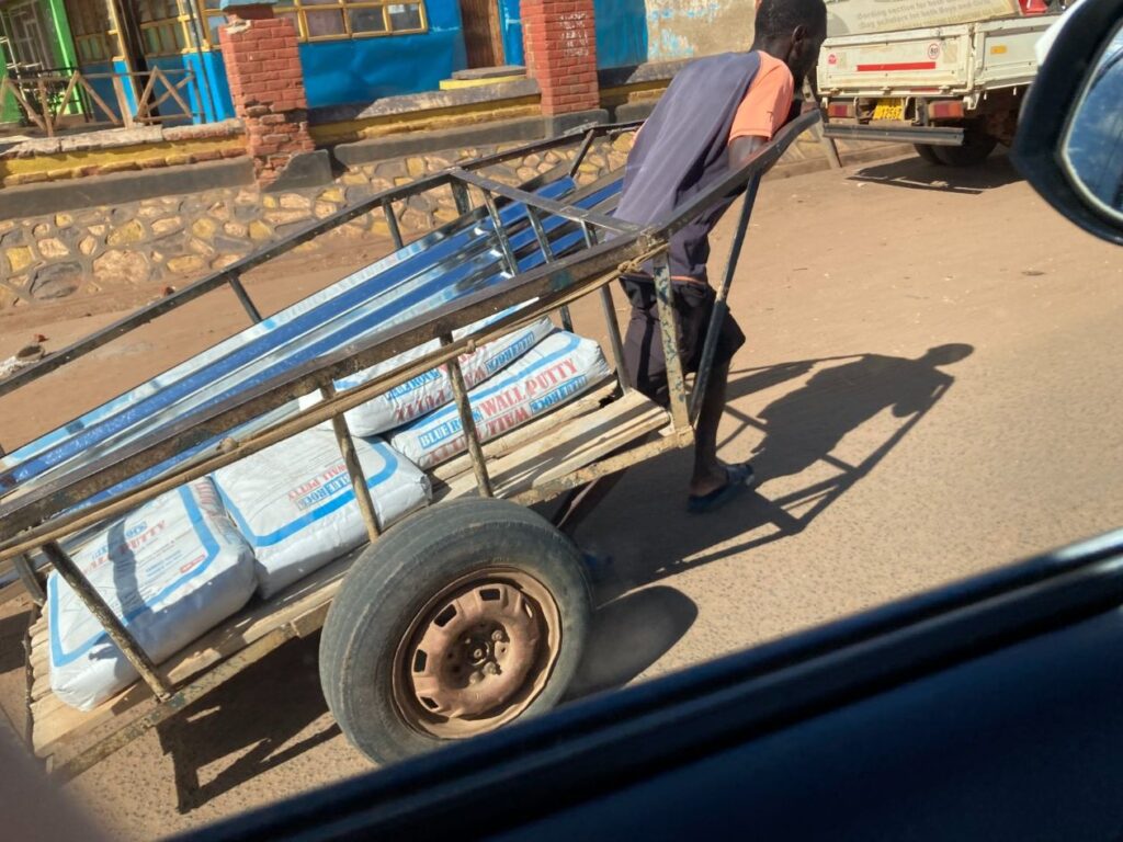 • Veel werk gebeurt handmatig. We zagen mensen die zware karren voorttrekken (foto 16).