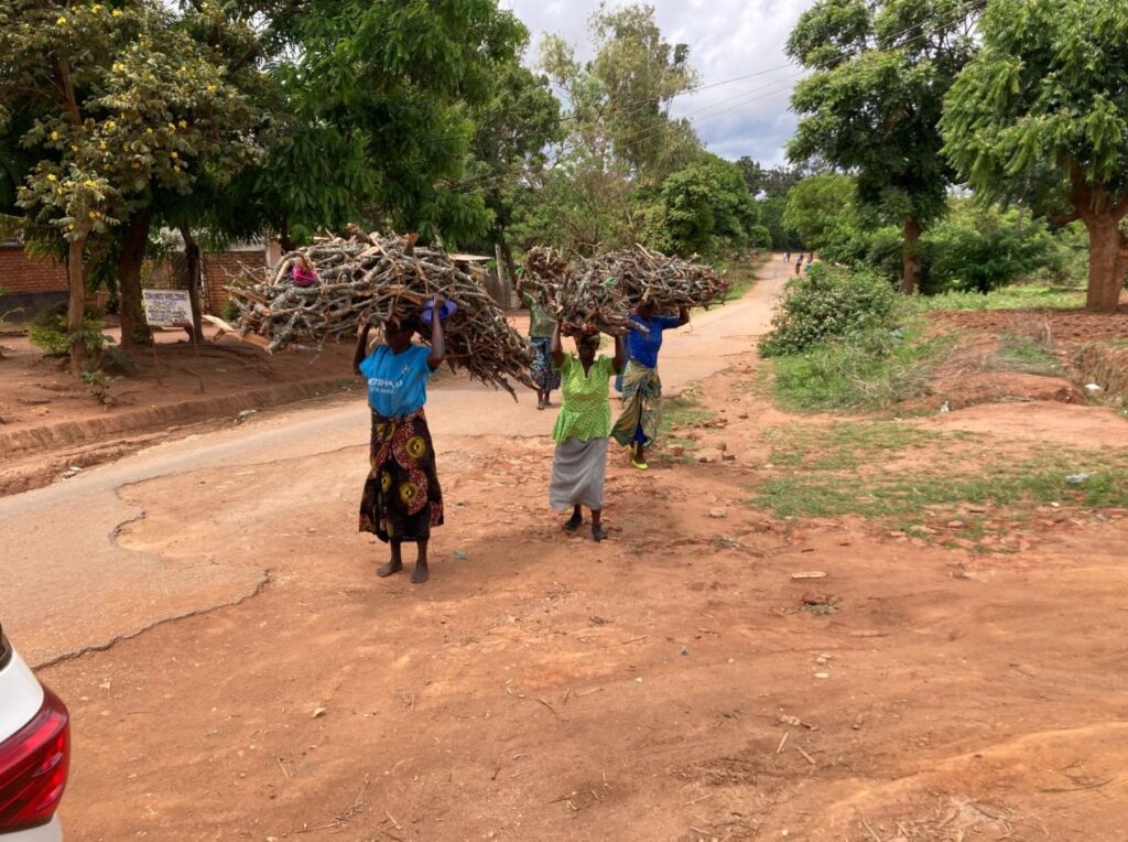 Daarna reden we via dezelfde hobbelige weg terug naar de hoofdweg, de M1, die van noord naar zuid door Malawi loopt. Onderweg kwamen we vrouwen tegen die hout hadden gesprokkeld om eten te kunnen koken (foto 6).