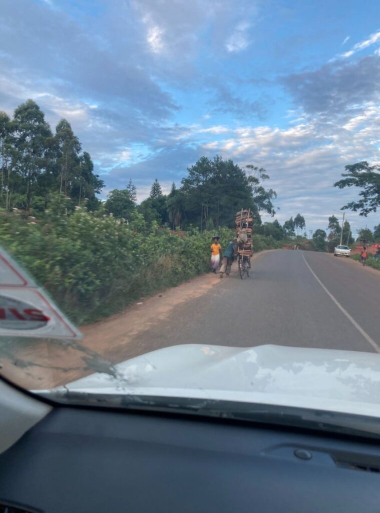 Taxi’s en vervoer zijn hier heel anders dan in Nederland. Veel mensen reizen in kleine busjes of zelfs in open vrachtwagens (foto 11). De staat van de voertuigen is vaak slecht, met veel deuken en weinig onderhoud. Tot slot zagen we hoe hout werd vervoerd op een fiets (foto 12). Zo gaan mensen zelfs steile hellingen op en af.