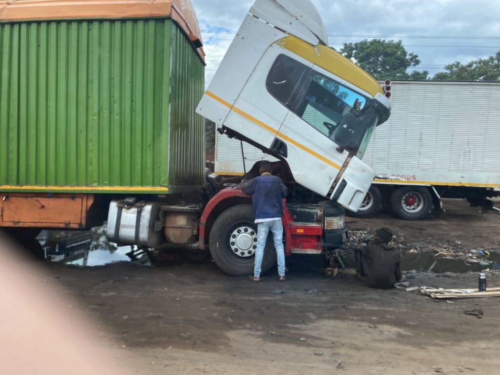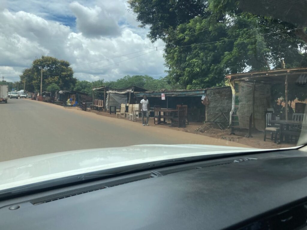 Veel huizen zijn klein en hebben golfplaten daken. Langs de weg worden banden en velgen verkocht. Ook staan er veel vrachtwagens en auto’s langs de kant van de weg. Die worden ter plekke gerepareerd en staan er soms dagenlang.