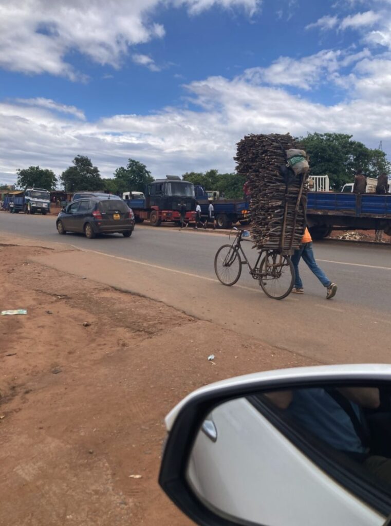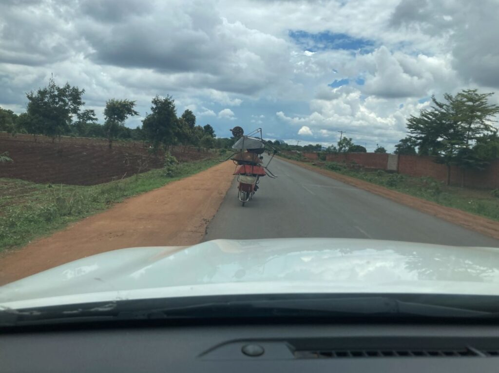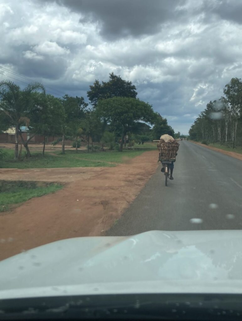 Onderweg, zowel heen als terug, zagen we weer van alles. We reden opnieuw langs de meubelboulevard. Er wordt enorm veel vervoerd per fiets, zoals kruiwagens, openhaardhout en cassave. We zagen Bunda Mountain, die 1.159 meter hoog is. In het vliegtuig van Nairobi naar Lilongwe hadden we eerder zelfs de top van de Kilimanjaro gezien, met zijn 5.895 meter het hoogste punt van Afrika en de hoogste vrijstaande berg ter wereld, gelegen in Tanzania.